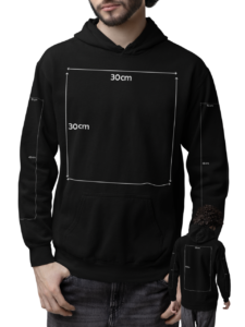 Sudadera con Capucha – Frente + Espalda + Mangas
